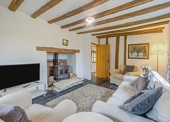 - Wood-burning stove in sitting room