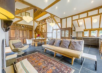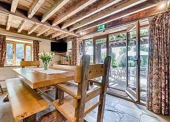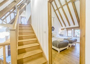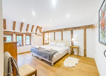 - Sleeps 8 in converted thatched barn