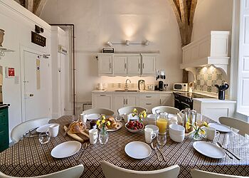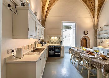 - Open-plan kitchen with long table